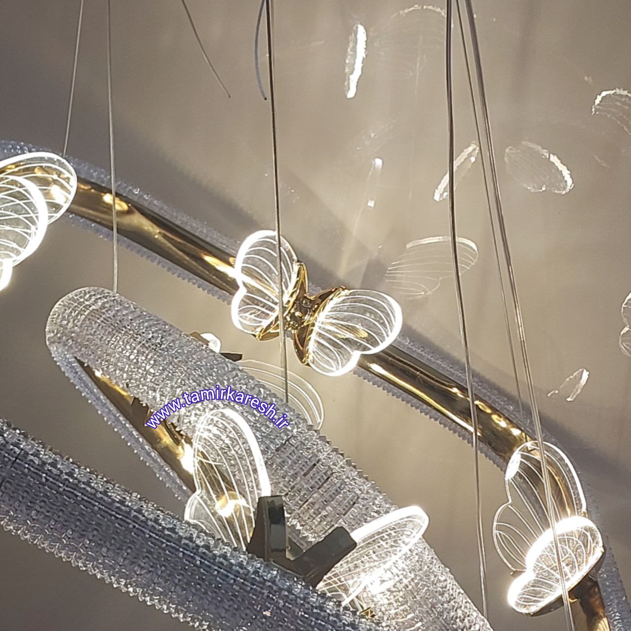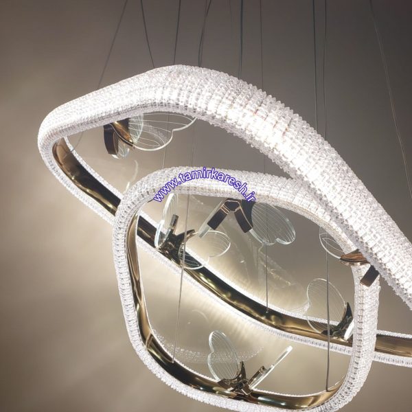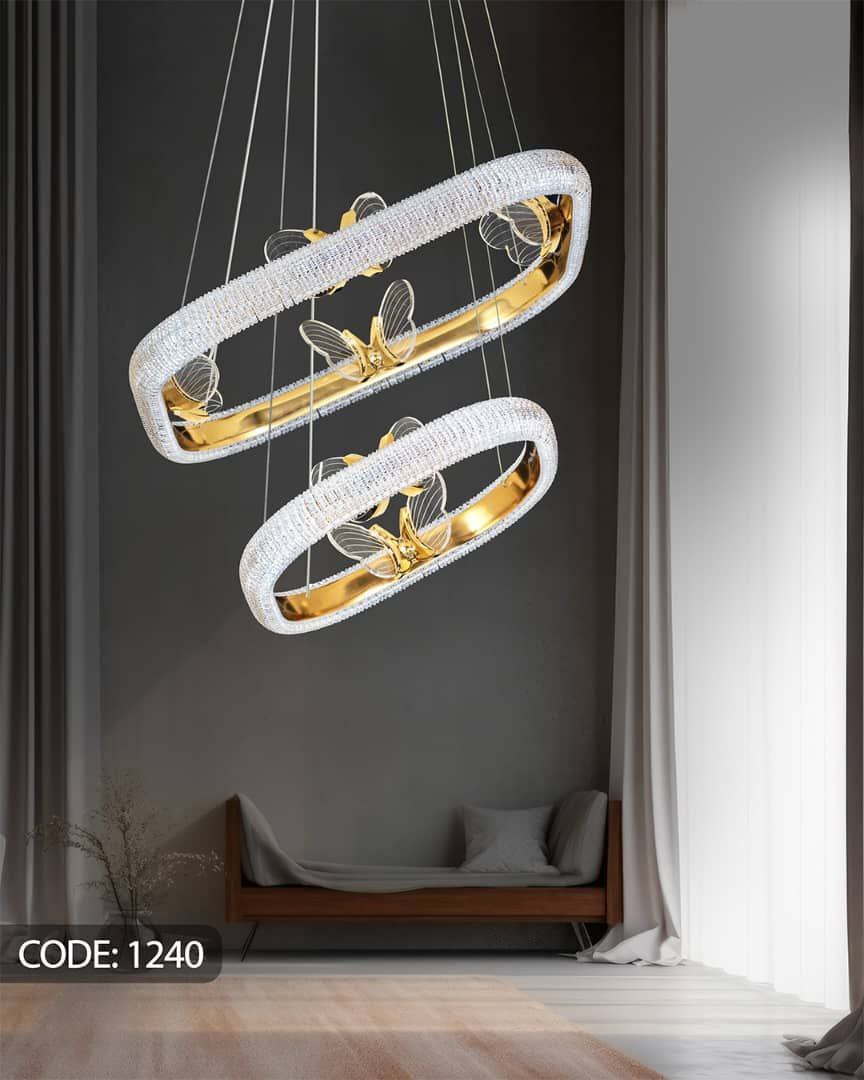 آویز کد 1240 با ترکیب 2 حلقه بزرگ و کوچیک پروانه دار که قابلیت تنظیم ارتفاع را دارد و با دارا بودن ریموت کنترل می توانید از سه حالت نوردهی به صورت (آفتاب/مهتاب/نچرال) به دلخواه خود استفاده شود.