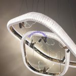 لوستر های آویز مدرن LED (ال ای دی) با صفحه ی نصب شونده به قطر 20 سانتیمتر و جنس استیل آبکاری شده ی با کیفیت، جلوه ای زیبا به محیط و سایر فضای منزل و محل کار شما می دهد. قطر حلقه های آویز این مدل 40 و 30 سانتیمتر می باشد.