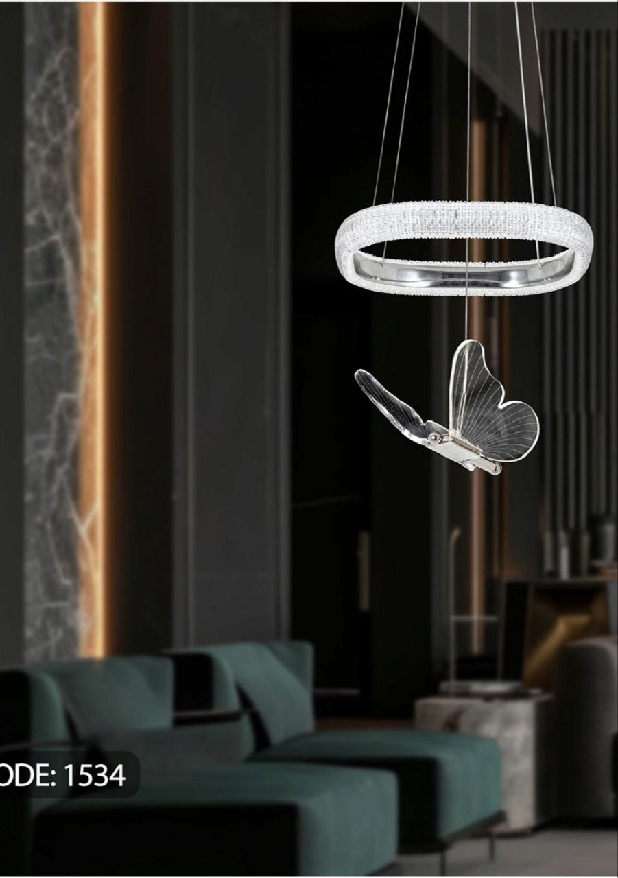 آویز کد 1534 با ترکیب حلقه (مربعی) و پروانه قابلیت تنظیم ارتفاع را دارد و با دارا بودن ریموت کنترل می توانید از سه حالت نوردهی به صورت (آفتاب/مهتاب/نچرال) به دلخواه خود استفاده شود.