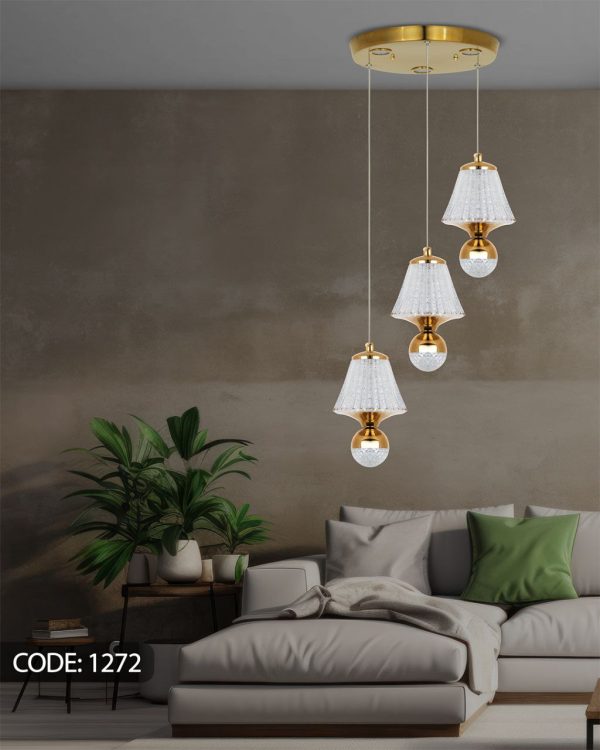 آویز کد 1272 با ترکیب صفحه نصب شونده و سه آویز هم شکل قابلیت تنظیم ارتفاع را دارد و با هر بار کلید خاموش و روشن قابلیت سه حالت نوردهی به صورت (آفتاب/مهتاب/نچرال) و به دلخواه شما را دارد. همچنین بر روی صفحه ی نصب شوند به جز آویز ها 3 عدد LED نصب شده است که در نوردهی بیشتر موثر است.