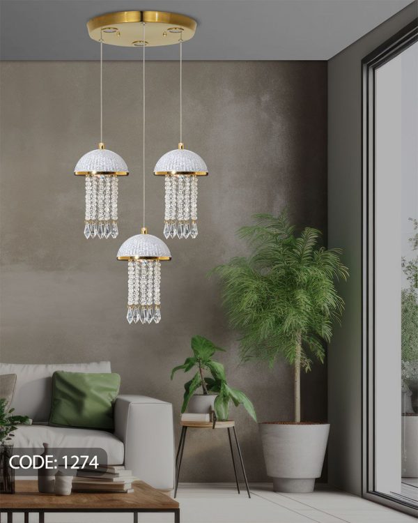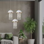 آویز کد 1274 با ترکیب صفحه نصب شونده و سه آویز هم شکل قابلیت تنظیم ارتفاع را دارد و با هر بار کلید خاموش و روشن قابلیت سه حالت نوردهی به صورت (آفتاب/مهتاب/نچرال) و به دلخواه شما را دارد. همچنین بر روی صفحه ی نصب شوند به جز آویز ها 3 عدد LED نصب شده است که در نوردهی بیشتر موثر است.