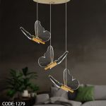 آویز کد 1279 با ترکیب صفحه نصب شونده و سه آویز هم شکل قابلیت تنظیم ارتفاع را دارد و با هر بار کلید خاموش و روشن قابلیت سه حالت نوردهی به صورت (آفتاب/مهتاب/نچرال) و به دلخواه شما را دارد. همچنین بر روی صفحه ی نصب شوند به جز آویز ها 3 عدد LED نصب شده است که در نوردهی بیشتر موثر است.