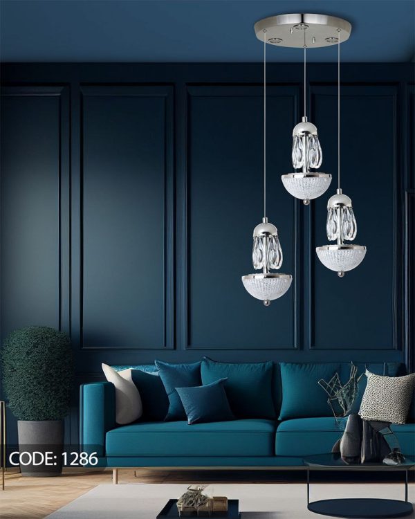 آویز کد 1290 با ترکیب صفحه نصب شونده و سه آویز هم شکل قابلیت تنظیم ارتفاع را دارد و با هر بار کلید خاموش و روشن قابلیت سه حالت نوردهی به صورت (آفتاب/مهتاب/نچرال) و به دلخواه شما را دارد. همچنین بر روی صفحه ی نصب شوند به جز آویز ها 3 عدد LED نصب شده است که در نوردهی بیشتر موثر است.