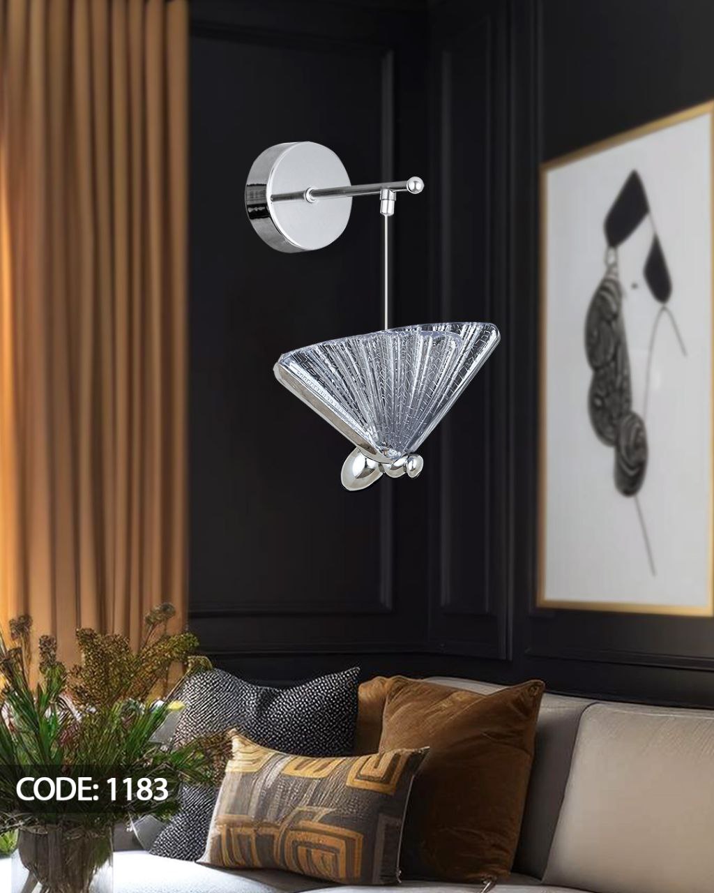 همچنین رنگ بدنه لوستر دیواری کد 1183 کروم می باشد و البته رنگ طلایی آن هم موجود است که با کد دیگری در همین سایت قابل دیدن می باشد.